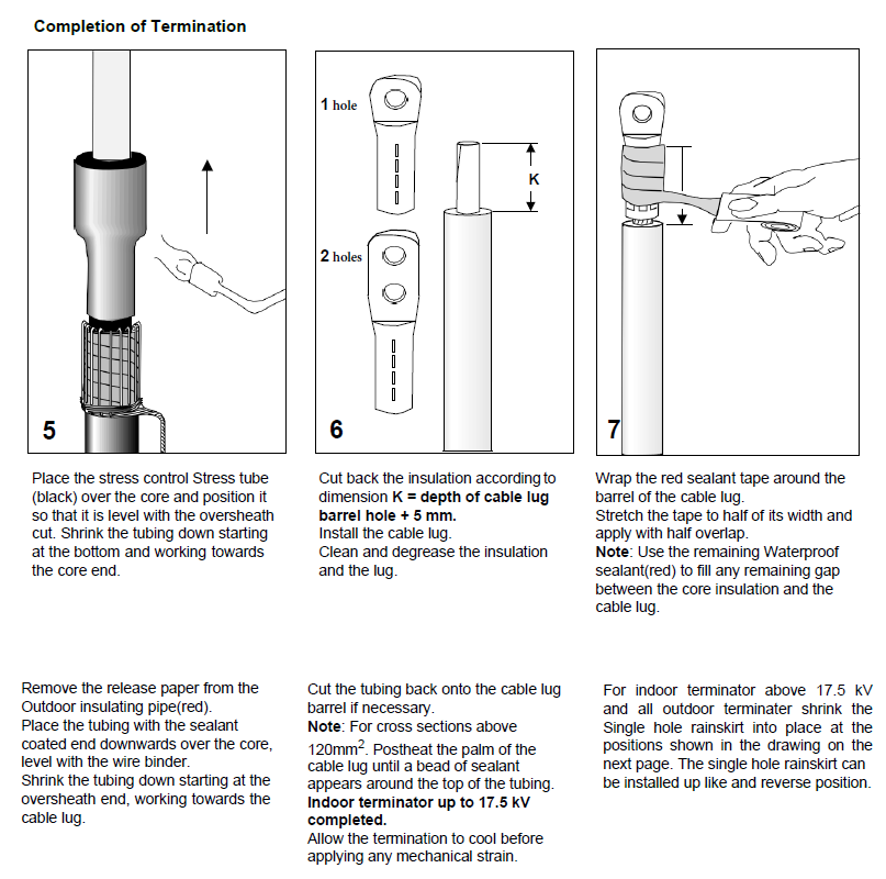 Tubing should be cut smoothly with a sharp knife leaving no jagged edges. Start shrinking the tubing at the position recommended in the instruction.