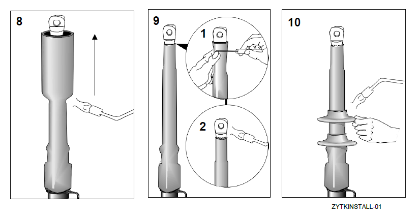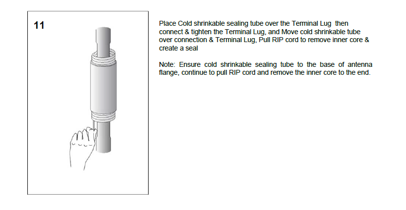 Ensure that the tubing is shrunk smoothly all round before continuing along the cable. Tubing should be smooth and wrinkle free with inner components clearly defined.